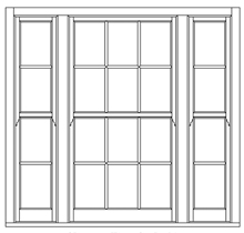 18th-century slender Georgian design, often 6 panes over 6, but sometimes as many as 12 panes over 12. authentic Georgian layouts are often without horns.